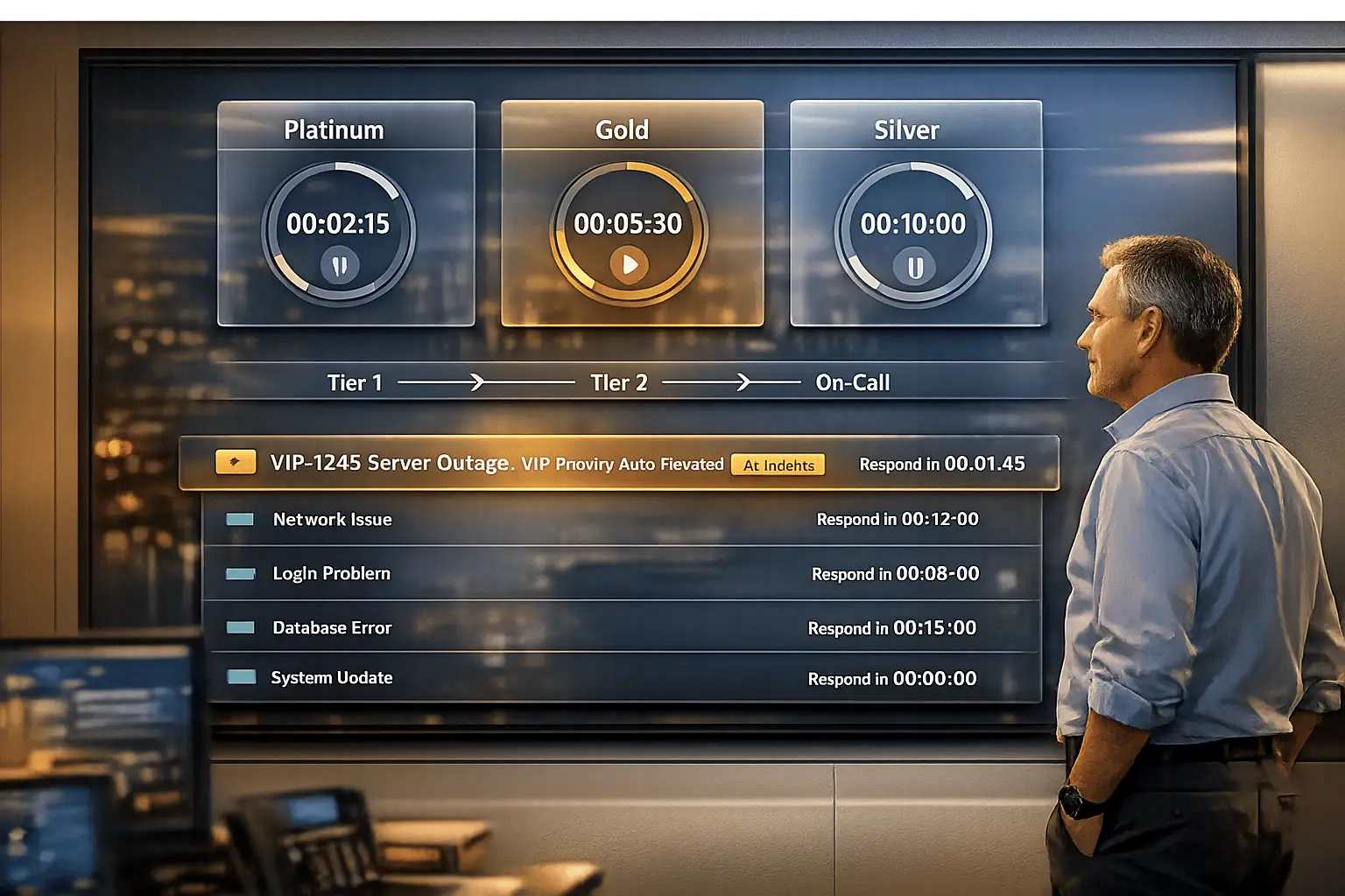 Create dynamic SLAs from a customer’s journey with you. Prioritize at risk customers, customers with upcoming contract renewals, and action on them automatically.
