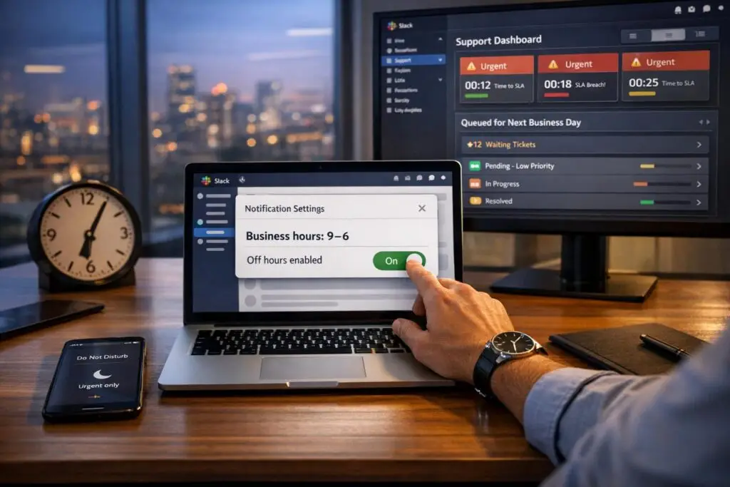 Dealing with constant Slack notifications can quickly lead to burnout. To prevent this, you need clear boundaries and smart automation. By organizing communication channels, defining work hours, and using AI effectively, you can protect your team while maintaining strong SLA performance. Here’s how to create workflows that work for both your agents and your customers.