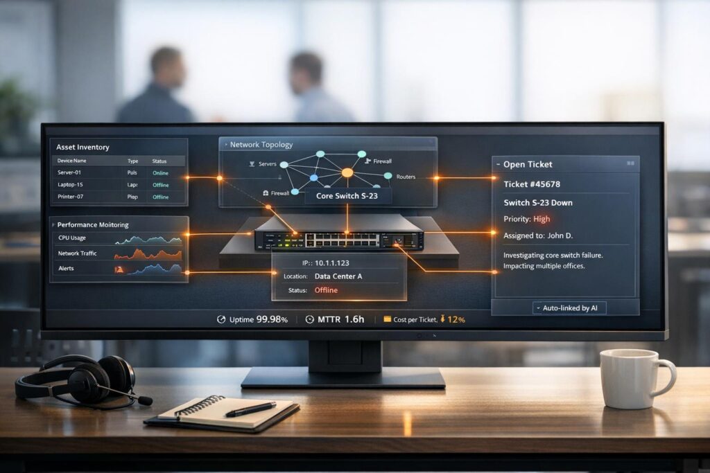 The solution? Integrating asset management into helpdesk workflows. This approach links devices to support tickets, providing instant access to asset specs, history, and warranty details. The result: faster diagnostics, fewer escalations, and reduced downtime.