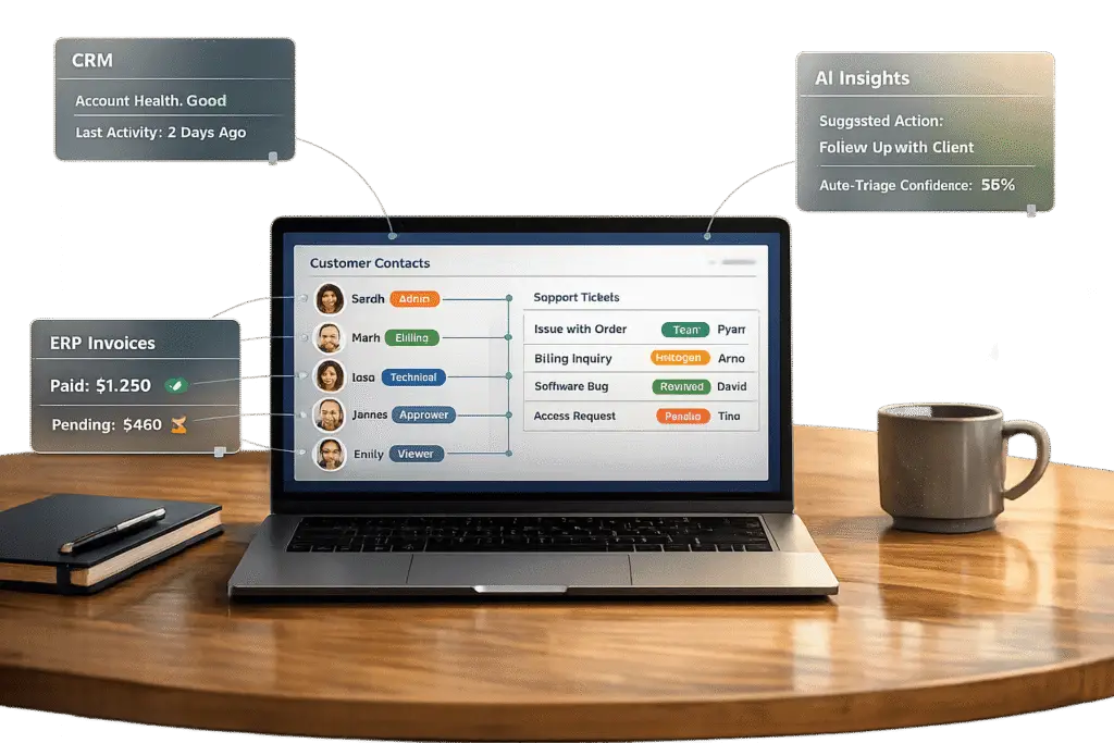 Metrics like Predictive CSAT (Customer Satisfaction) and First Contact Resolution (FCR) detection are especially useful for multi-contact portals. AI can predict customer satisfaction trends based on interaction data and determine whether an issue was resolved on the first try – something that’s historically been hard to measure. These insights are presented in customizable dashboards, offering agents and account managers a real-time view of account health, SLA compliance, and satisfaction trends. According to industry research, adopting AI for customer management can boost revenue by 25% by cutting operational costs and reducing customer churn [1].