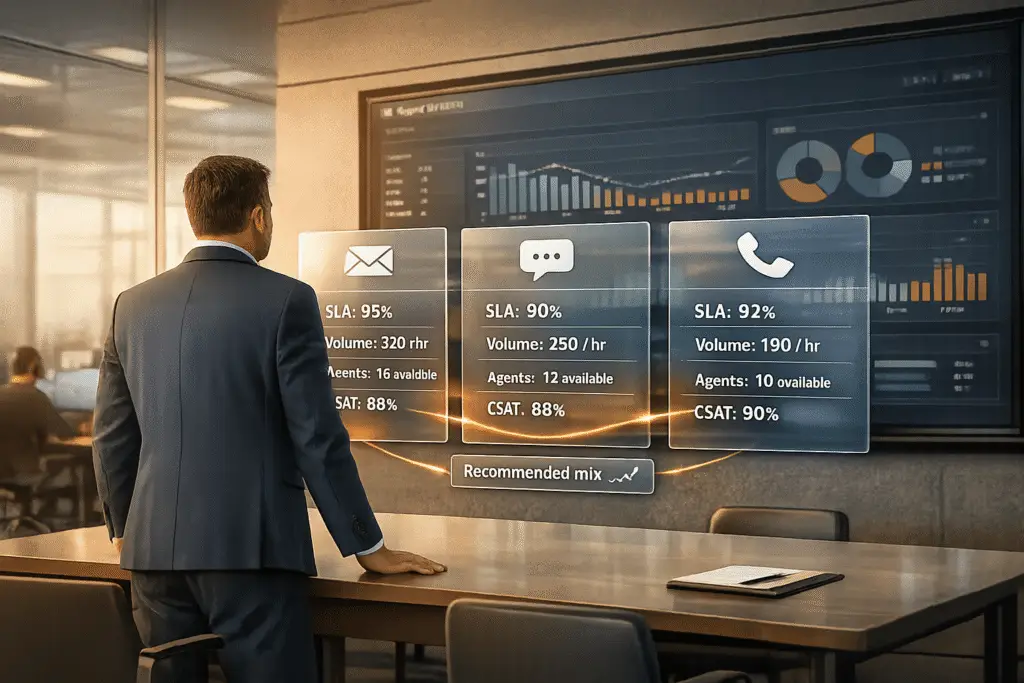AI doesn’t just improve routing – it also helps with proactive staffing. Workforce management tools powered by AI can analyze historical data and seasonal trends to forecast agent demand across email, chat, and phone channels. This allows you to allocate resources efficiently and prevent bottlenecks before they arise.