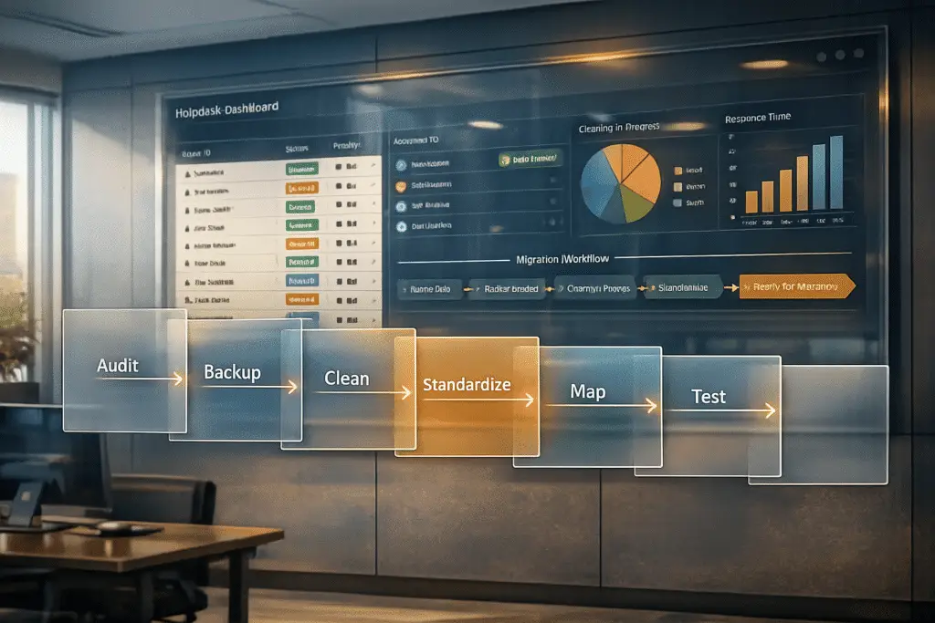 Take Novohit‘s experience in February 2025 as a cautionary tale. Operations manager David Bertolini oversaw a migration to Zoho using the vendor’s in-house team instead of specialized services. The process stretched over six weeks, including two weeks where the company operated without a helpdesk platform and relied solely on email. Post-migration, they faced missing data and character set errors, forcing them to manually sift through thousands of records [14].