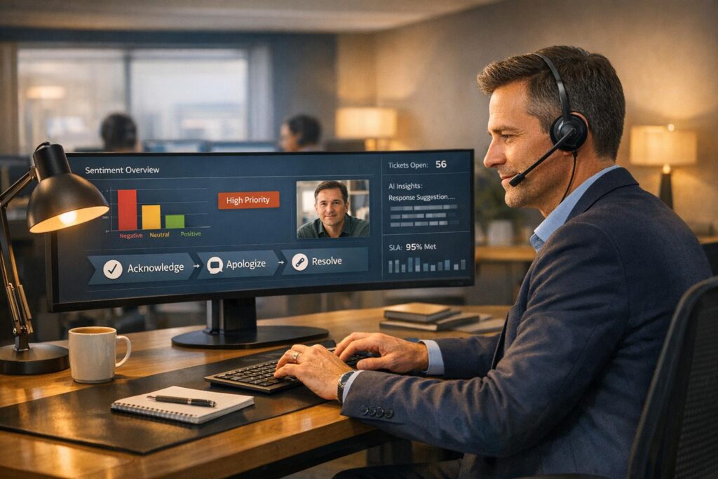 AI tools can help by detecting sentiment, suggesting responses, and prioritizing urgent issues. But ultimately, success comes down to clear communication, empathy, and timely resolutions.