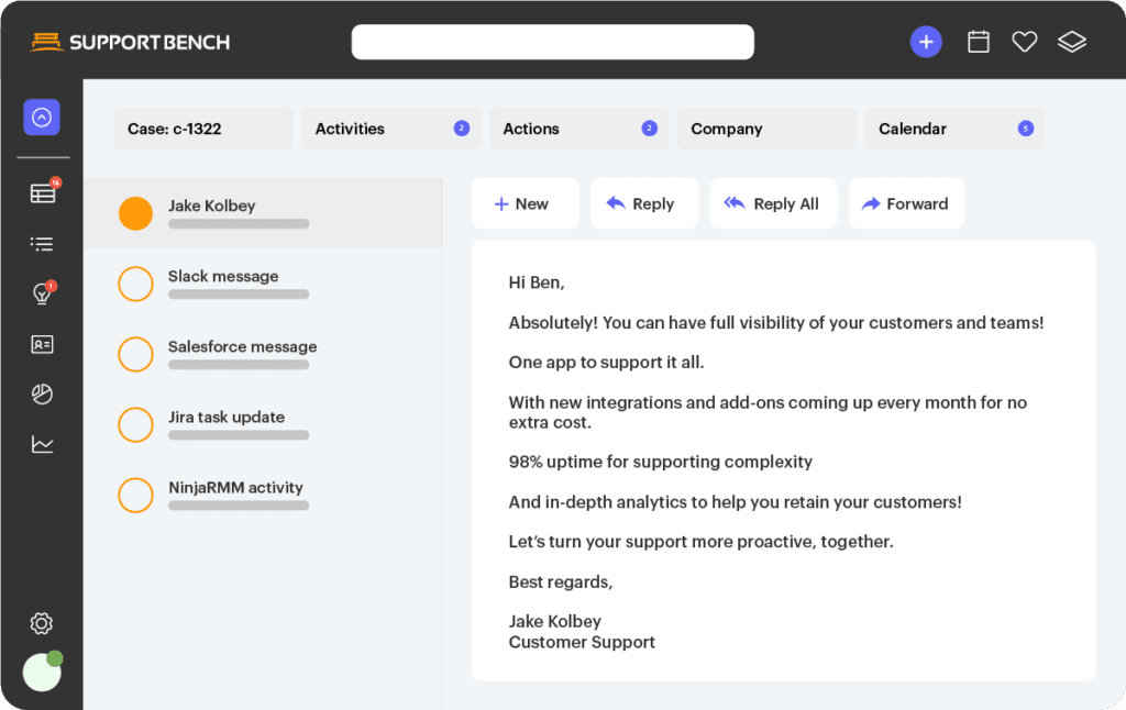 Never miss a case or inbound email reply with Supportbench’s desktop notifications. Increases first response time for agents for efficient case management.