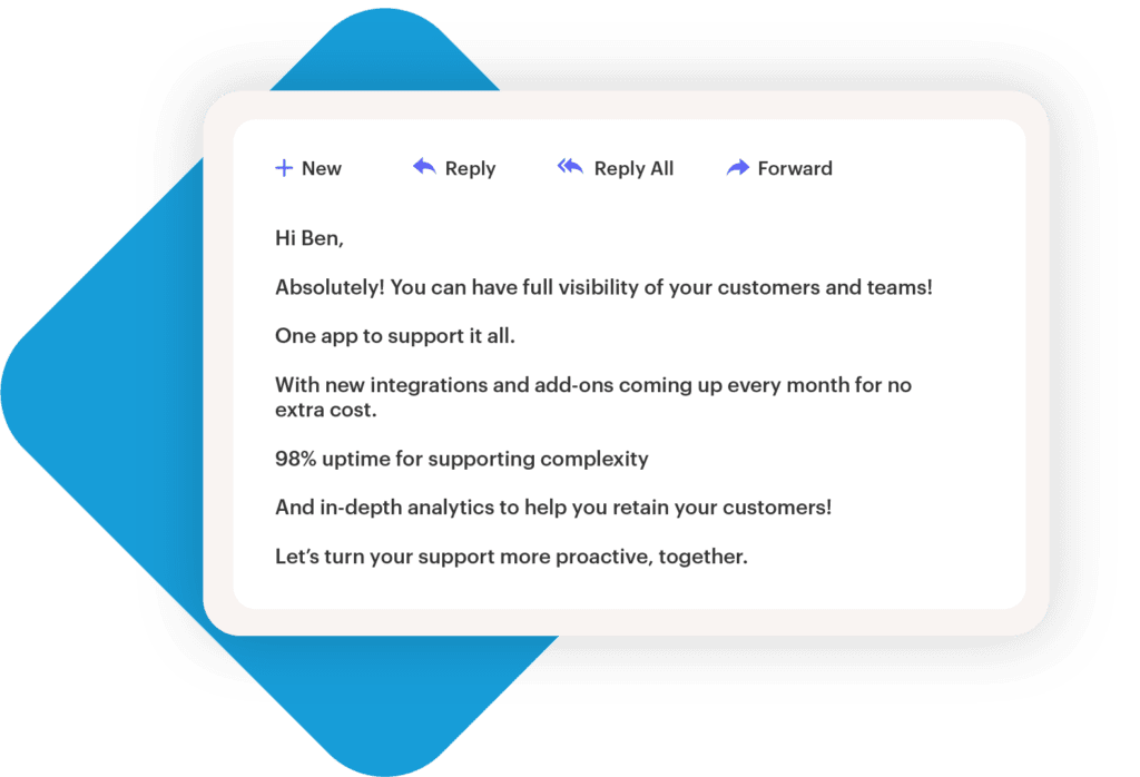 Get automatic push notifications and email updates with Supportbench. Keep your agents engaged with desktop notifications.