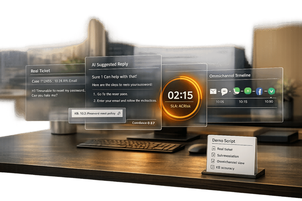 When evaluating platforms, using real-world scenarios is critical to determine if a product is genuinely ready for production. Generic demos often rely on polished, controlled datasets that don’t reflect the unpredictable nature of actual B2B support tickets. Real tickets include typos, complex multi-turn conversations, and tricky edge cases – all of which test whether a platform can handle the messy, real-life challenges of your operations. Without these specific demo scenarios, you’re essentially judging a product that may never perform as promised in real-world use.