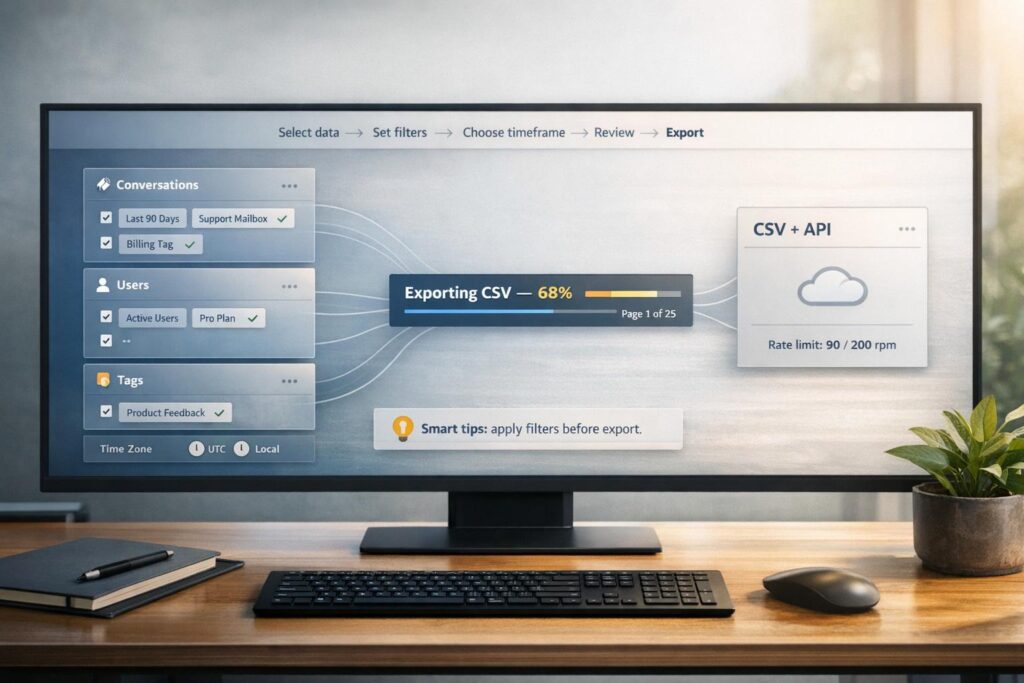 Handling large data exports can be a challenge, as bigger files take longer to process and can clog up the export queue. To keep things manageable, use specific filters before exporting. Narrow down your data by applying filters like Date Range, Mailbox, Tags, or Assignee to avoid dealing with massive, unwieldy files.
