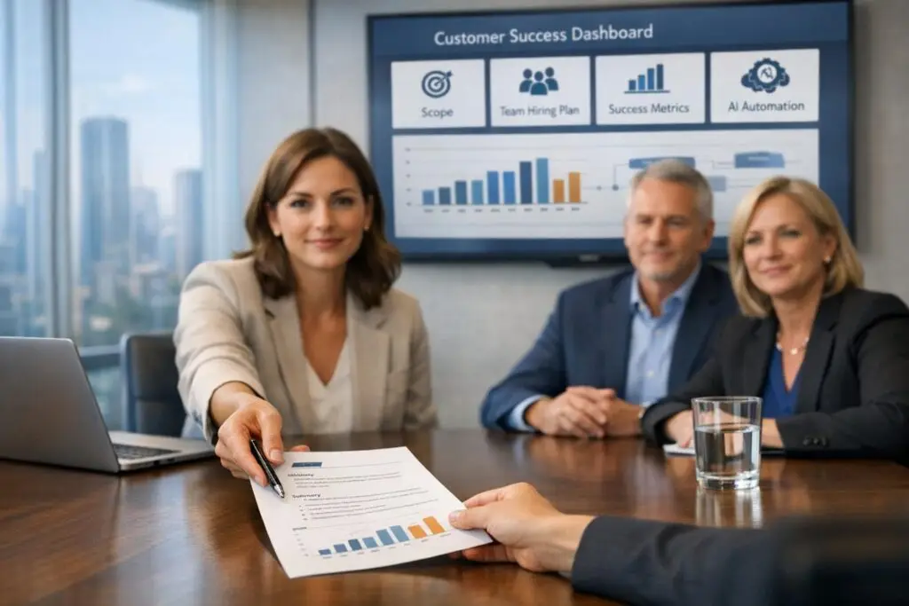 Look for a timeline tied to revenue milestones. For example, hiring a second CSM might align with reaching $3M ARR.