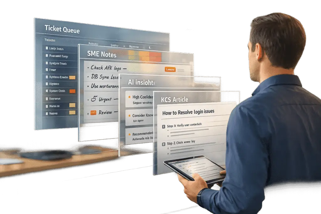 Collecting knowledge is just the first step. The real payoff comes when that knowledge is woven into the everyday tasks your team already handles. If agents have to pause their work to dig for information, chances are they won’t use it – and you’ll end up falling back on informal, undocumented practices.