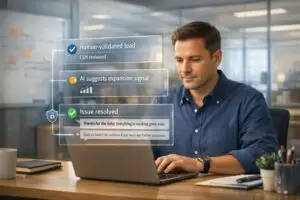 Combine survey results with data from ticket trends, resolution times, and portal usage to identify pain points. Set up a 30-day review cycle to analyze performance and feedback, making adjustments as needed. Encourage agents to document common post-cutover issues and turn them into permanent knowledge base resources. Lastly, keep a fallback option, like temporary access to the old system, ready to address any critical failures during the initial rollout. This ensures you’re prepared to handle any unexpected challenges while maintaining customer trust.