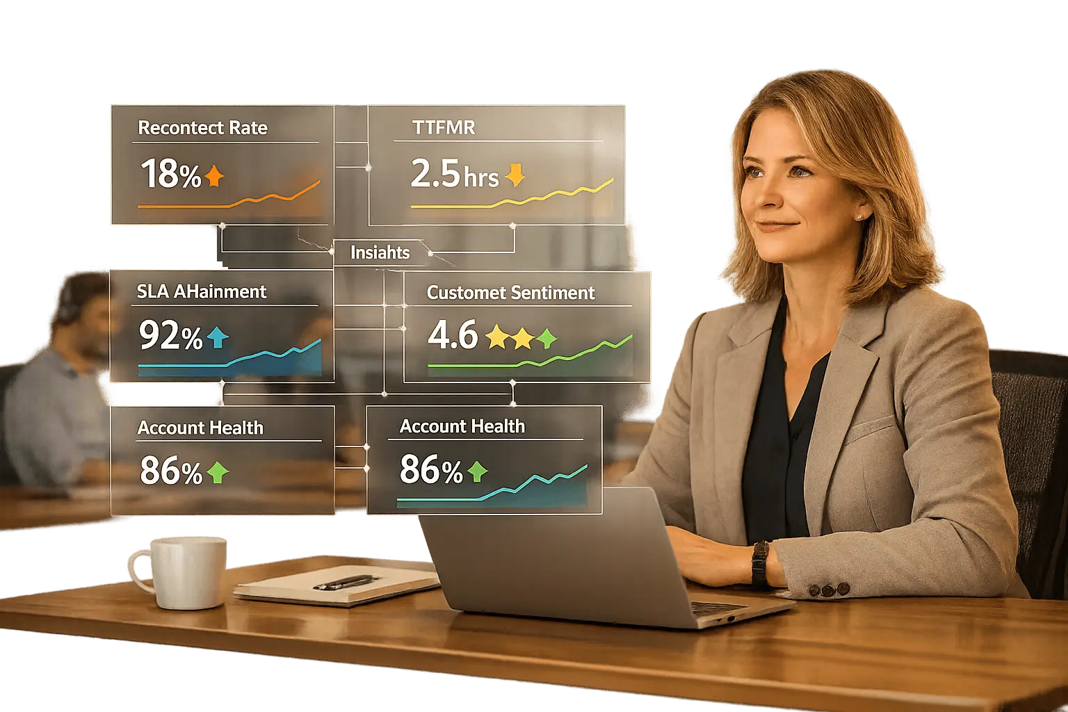 Assess B2B support queue health using recontact rates, TTFMR, FCR, SLAs, sentiment, and account-level insights—not zero backlog.