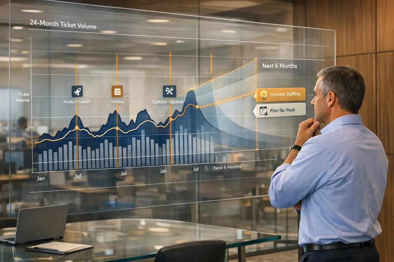 Forecast B2B ticket volume and staff accurately using 12–24 months of cleaned data, event overlays, and AI-driven models.