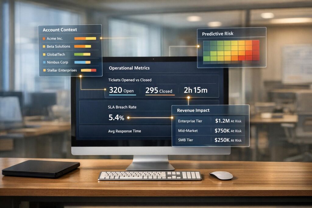 | Key Metrics | SLA, CSAT, resolution times | Sentiment, renewal risks |