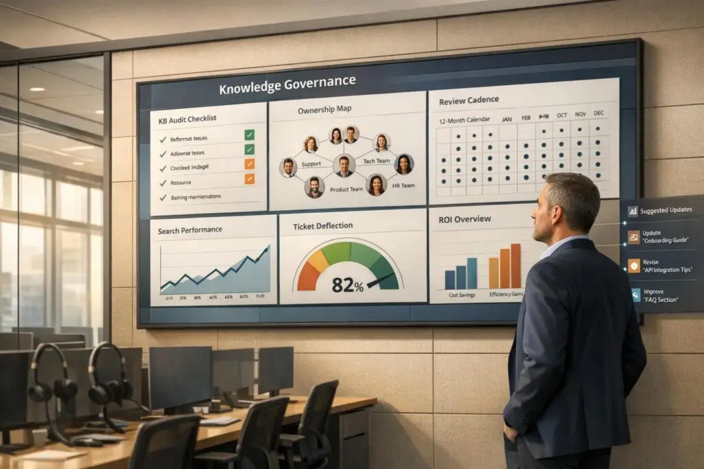 - How do you manage knowledge governance (ownership, review cycles, and “KB debt”)?