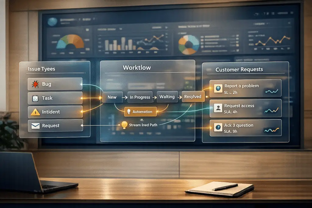 Setting up Jira issue types, workflows, and statuses for your customer support operations goes beyond just technical adjustments – it’s about designing a system that benefits both your team and your customers. By aligning issue types with ticket categories, crafting workflows that reflect real support processes, and customizing statuses for better clarity, you create a foundation that streamlines operations. Add automation to handle repetitive tasks, and you’ll see improvements in prioritization, consistency, and reporting. This approach helps you track SLAs and resolution times across various projects with ease.