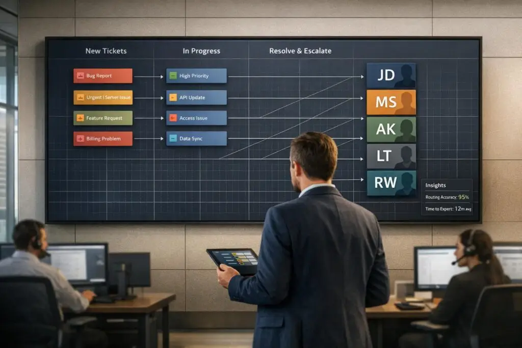 This approach ensures that routine tickets are handled efficiently while urgent or complex cases get the attention they need.