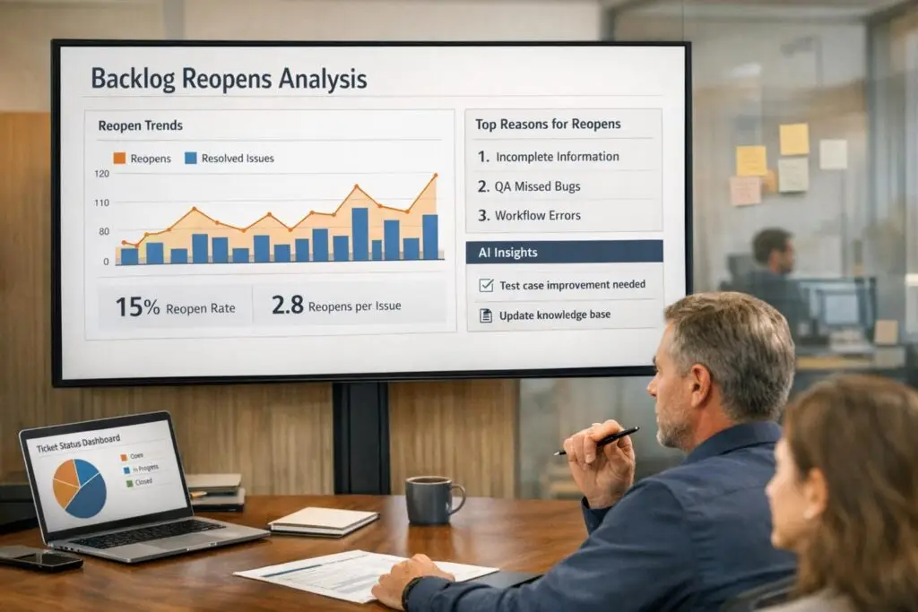 Predictive analytics uses AI to assess the likelihood of ticket reopens by analyzing factors like sentiment changes, response delays, and historical resolution data. For example, AI models can flag repeated incidents that traditional metrics might miss. In one case study, a Fortune 500 food and beverage company discovered that AI detected a 14% reopen rate – far higher than the 2% identified by traditional analytics.