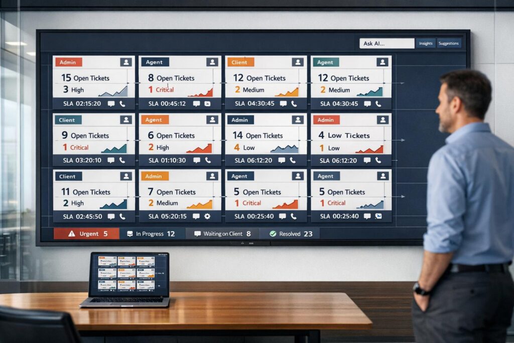 After establishing proper access controls and segmenting clients effectively, the next focus is delivering the right information at the right time. A thoughtfully designed dashboard elevates your portal from just a ticketing tool to a centralized IT hub – eliminating the hassle of jumping between systems to get a full IT picture [1].