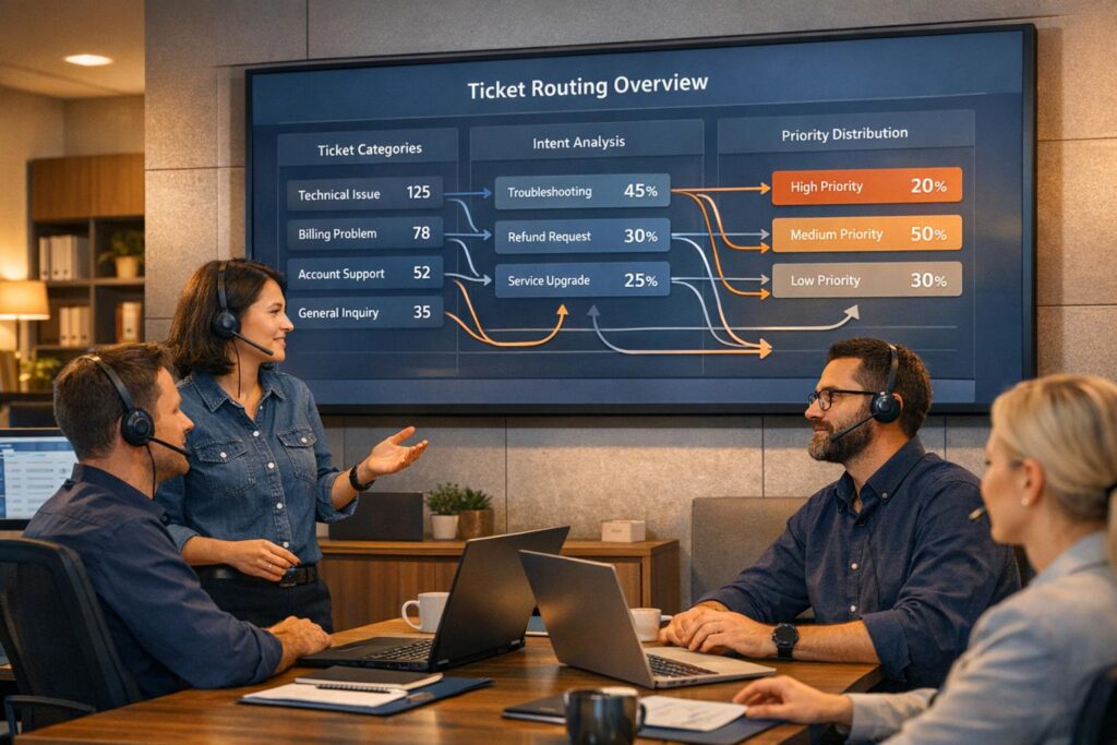 - Routing Logic: Combines NLP outputs with business rules to assign tickets to the best-suited agent.