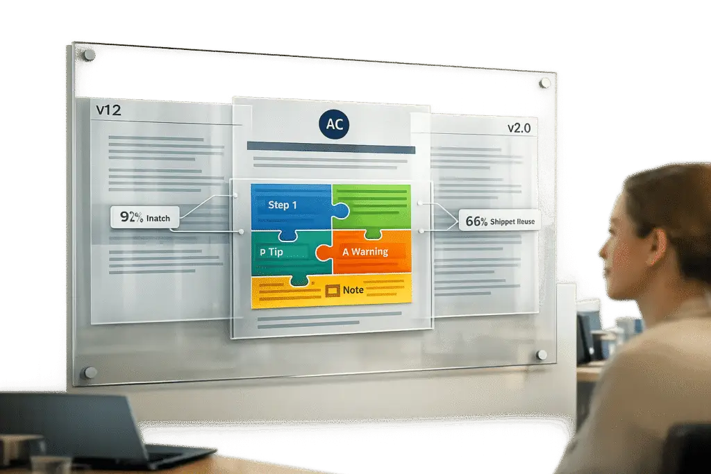 When working with centralized reusable content, it’s essential to adapt it for instances where product differences require specific details. Reusable snippets help avoid duplicating shared content, but what about content that’s almost identical across products? This is where smart customization comes into play. Instead of creating separate articles for every product version – which can quickly become a maintenance nightmare – you can use single-sourcing techniques and metadata tagging to manage variations within a single document. This approach keeps your knowledge base streamlined while delivering accurate, version-specific content. While reusable snippets handle shared elements, smart customization tackles the finer differences across products and versions.