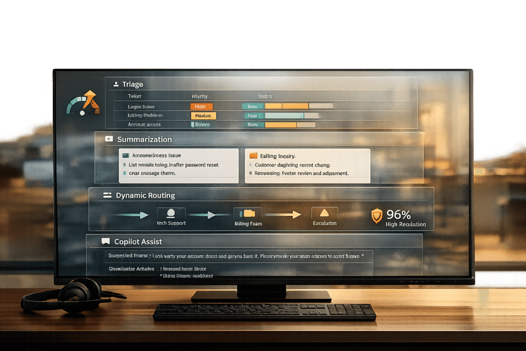 - AI copilots draft responses and suggest solutions, cutting handle times by 30–50%.