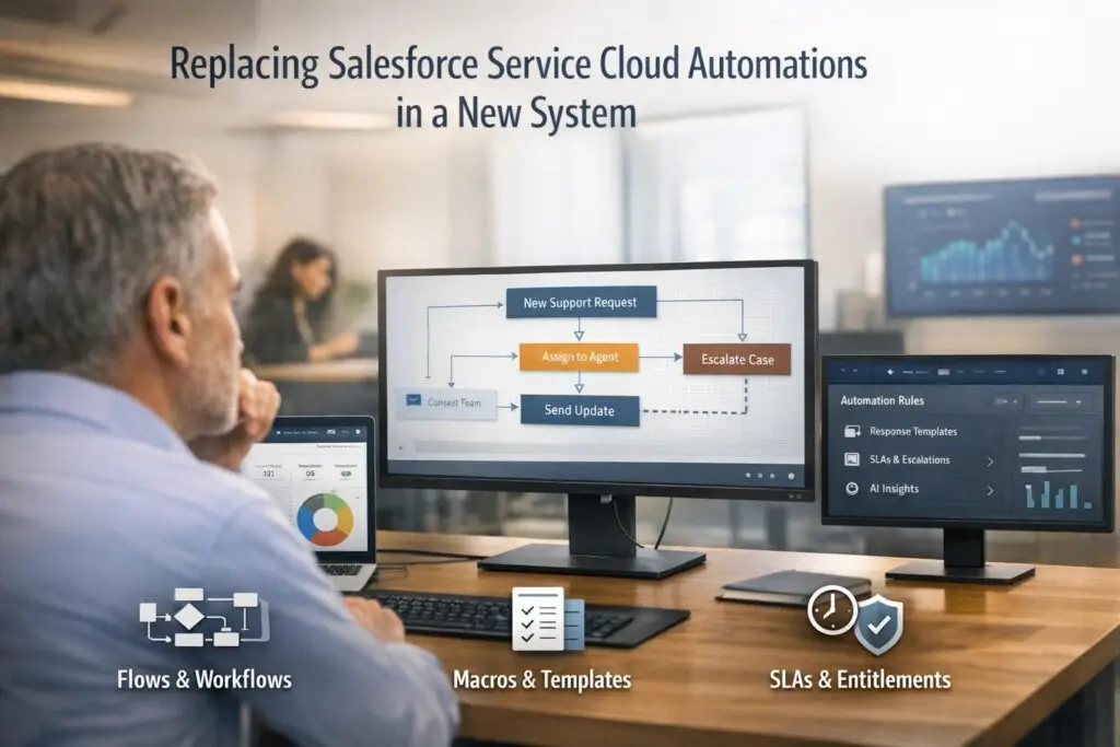 Switching away from Salesforce Service Cloud automations like Flows, Macros, and Entitlements isn’t just about migrating processes – it’s an opportunity to streamline operations and reduce inefficiencies. Here’s how to approach it: