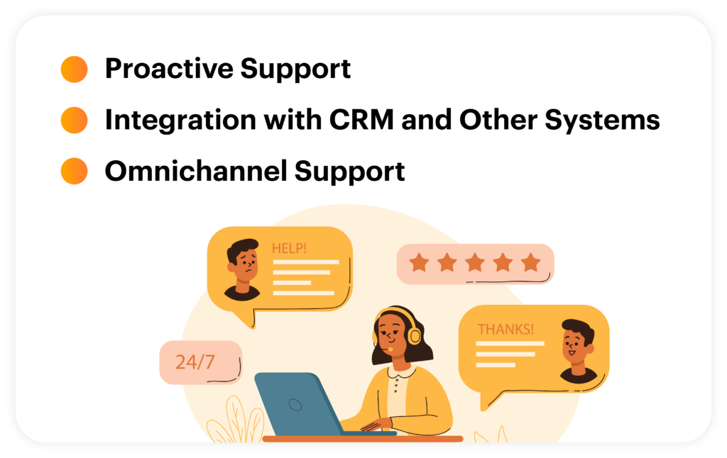 - Integration with CRM and Other Systems: Integrating customer service platforms with CRM systems, like Salesforce, and other enterprise tools ensures that support agents can access a wealth of client data and history. This information enables agents to provide personalized, relevant support, enhancing the efficiency of client interactions.