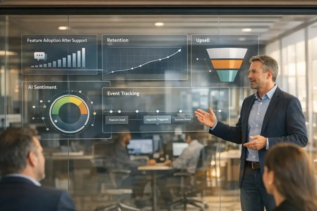 Keep an eye on the KPIs that show how support interactions influence product adoption and revenue growth.