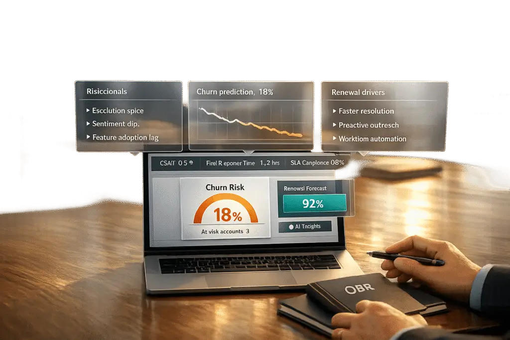 These predictive tools turn QBRs into forward-looking discussions. Instead of just reviewing last quarter’s performance, you can present actionable forecasts: which accounts need immediate attention, which are ripe for upsell opportunities, and where resources should be allocated for maximum impact [3]. By tying these insights directly to your customer’s business goals – like showing how faster resolution times improve their bottom line – you elevate the conversation from routine updates to a strategic partnership [2].