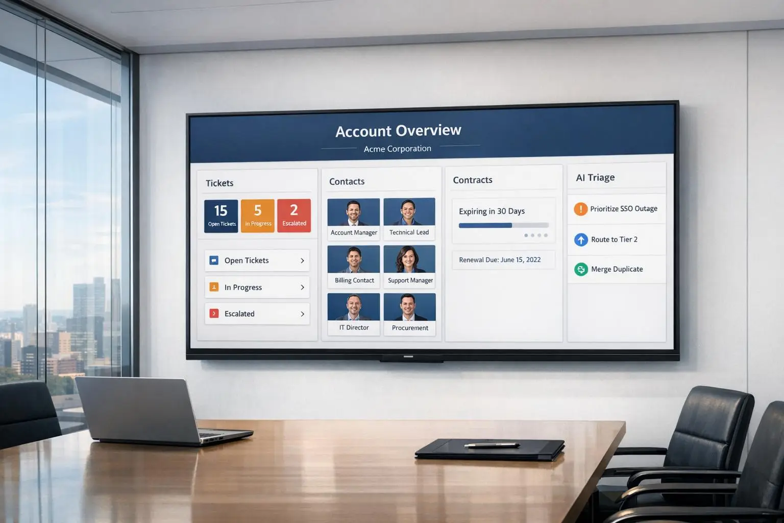 Gain a comprehensive view of all customer interactions and support processes, enabling proactive management and immediate insights from contact and account overviews.