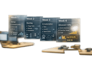 - Week 2: Enable AI automation, test routing accuracy, and track deflection rates to reduce agent workload.