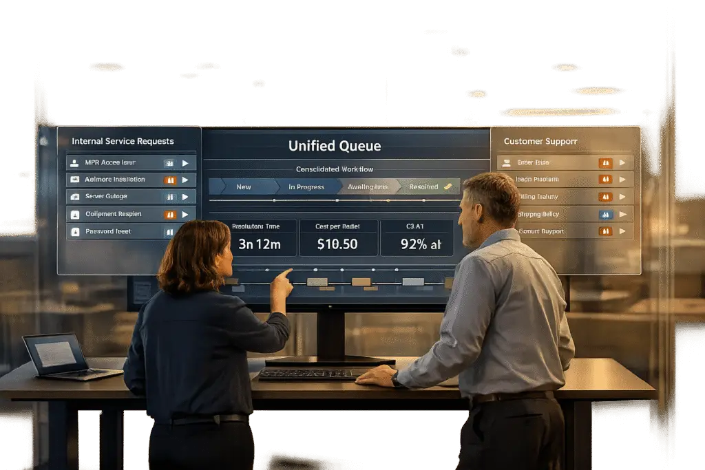 Unifying internal service requests with external customer support into a single system can eliminate inefficiencies, reduce costs, and improve both employee productivity and customer satisfaction. Here’s the core idea: fragmented systems lead to wasted time, duplicate efforts, and missed insights. By consolidating workflows into an AI-powered platform, organizations can streamline operations, cut resolution times, and enhance the overall experience for both employees and customers.
