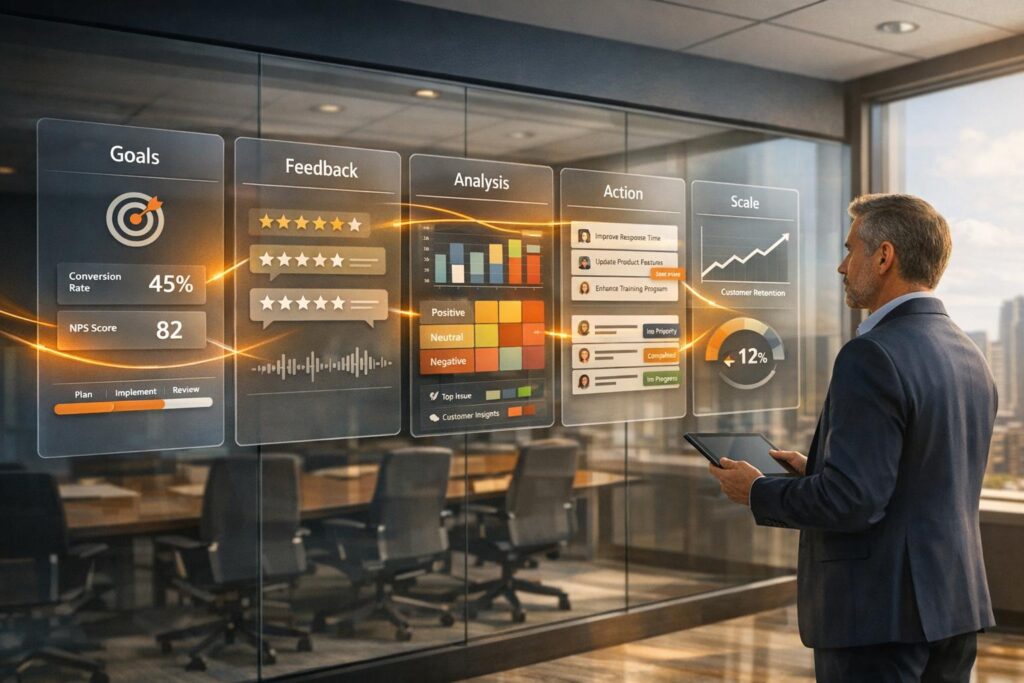 Before diving into feedback collection, it’s critical to define what you want to achieve and where you should be listening. Without clear objectives, you risk gathering a flood of unstructured data with no clear direction. Start by setting your goals and aligning them with business outcomes, then pinpoint the key customer touchpoints where feedback matters most.